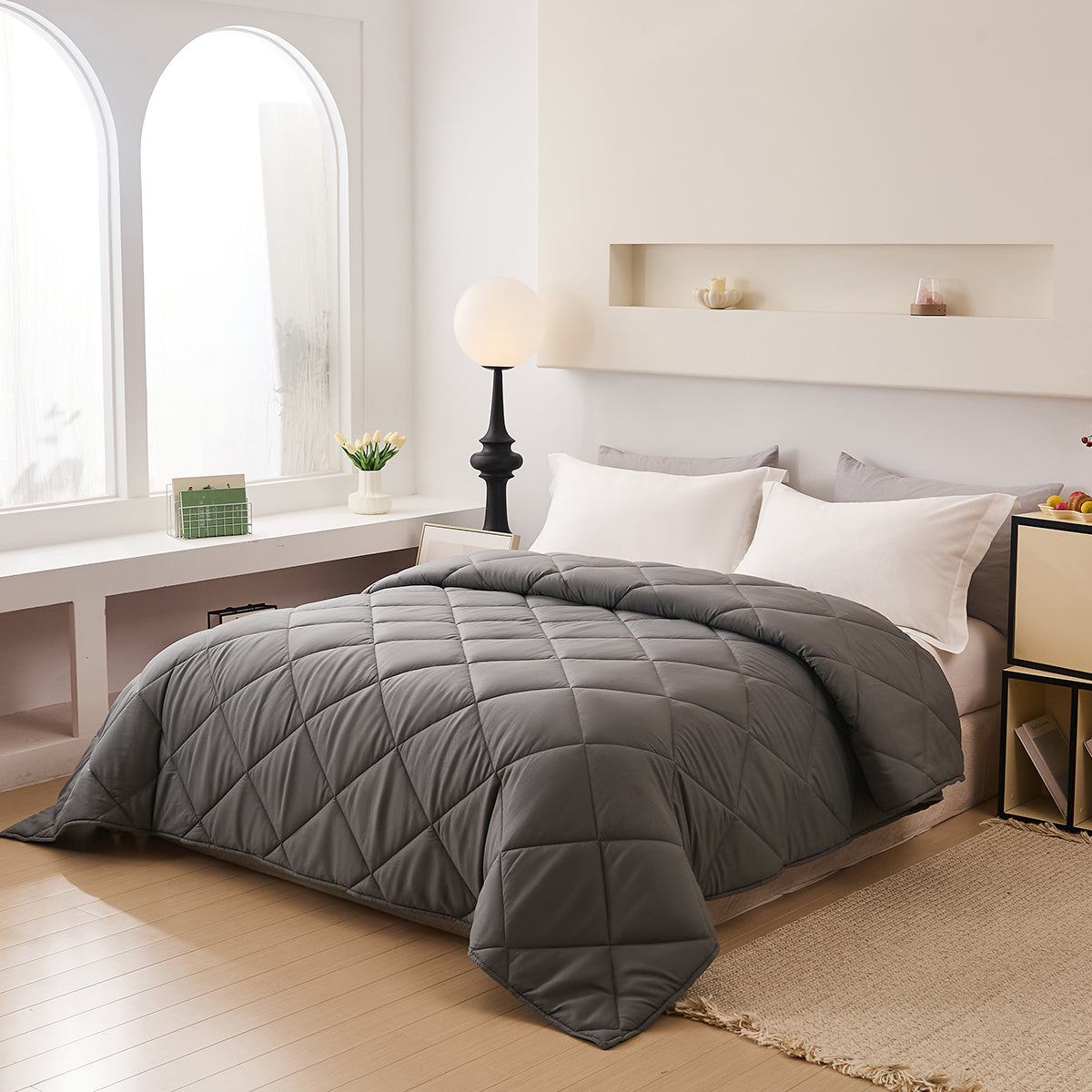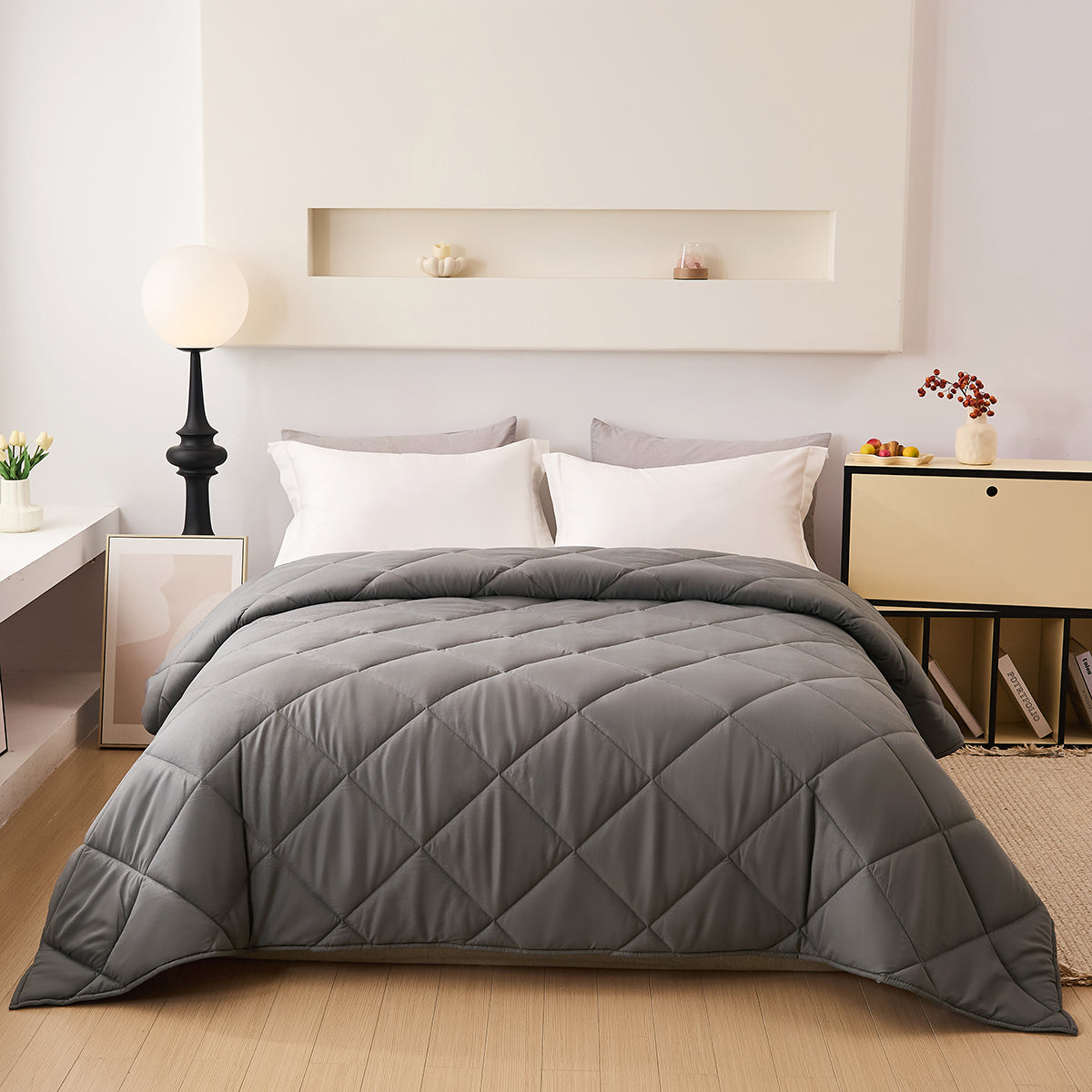 Hoesloos Dekbed - 140x200cm – Wasbaar, Ademend en Zacht – Grijs / Donkergrijs