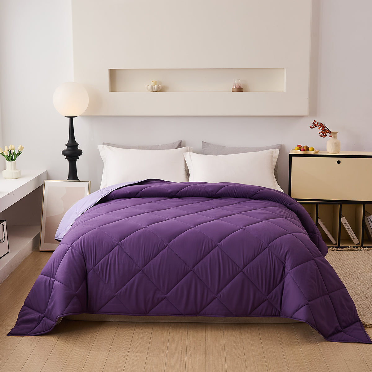 Hoesloos Dekbed - 140x200cm – Wasbaar, Ademend en Zacht – Paars / Roze